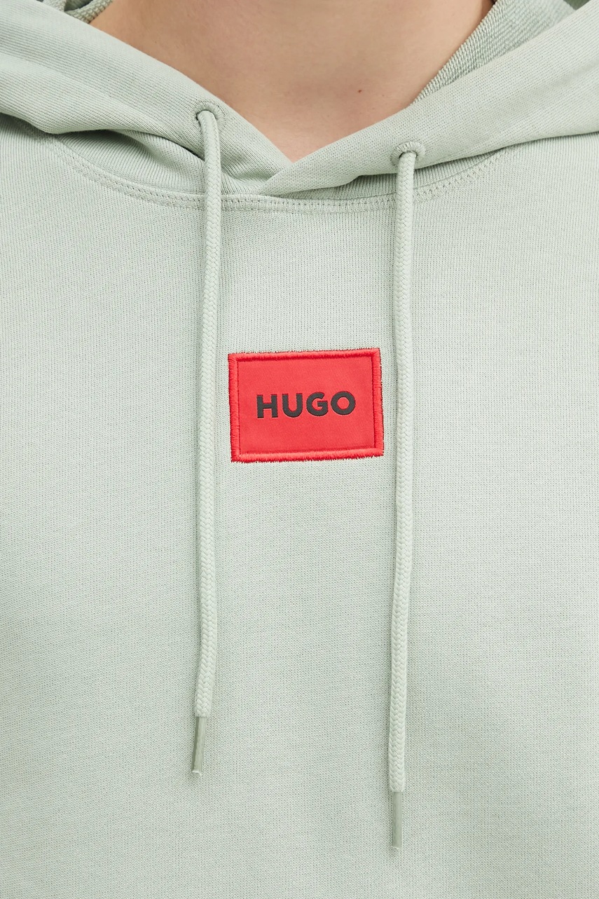 HUGO bluza bawełniana męska kolor zielony z kapturem z aplikacją 50458700