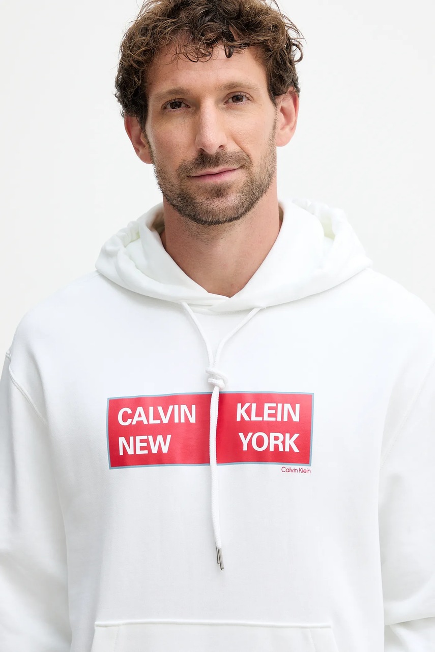 Calvin Klein Jeans bluza bawełniana męska kolor biały z kapturem z nadrukiem LV04RD259G