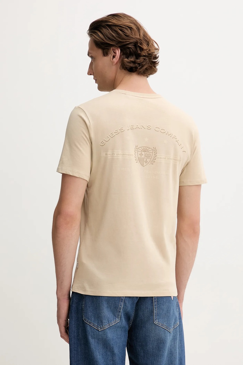 Guess Jeans t-shirt bawełniany męski kolor beżowy z nadrukiem M5BI42 K8HM0
