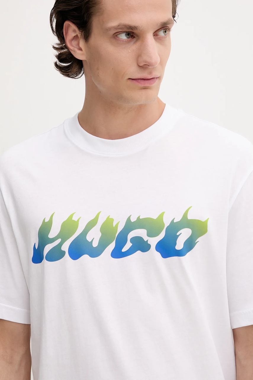 Hugo Blue t-shirt bawełniany męski kolor biały z nadrukiem 50546246