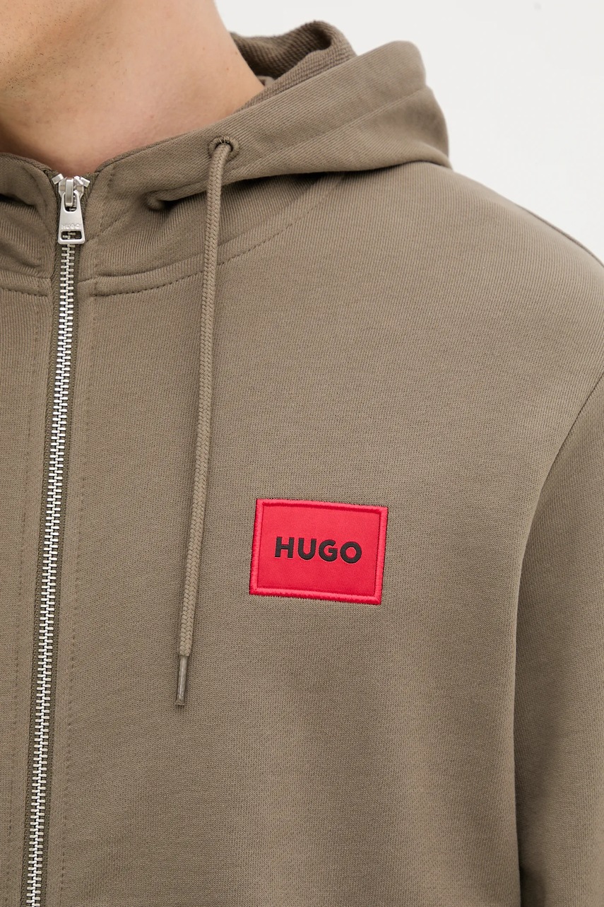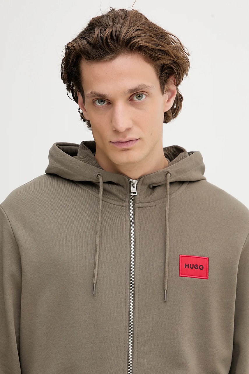 HUGO bluza bawełniana męska kolor zielony z kapturem melanżowa 50447972