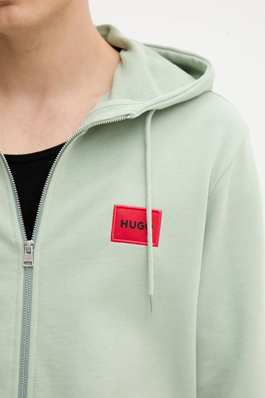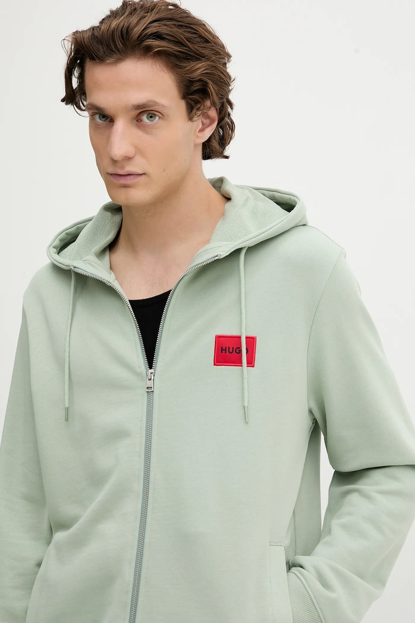 HUGO bluza bawełniana męska kolor zielony z kapturem melanżowa 50447972