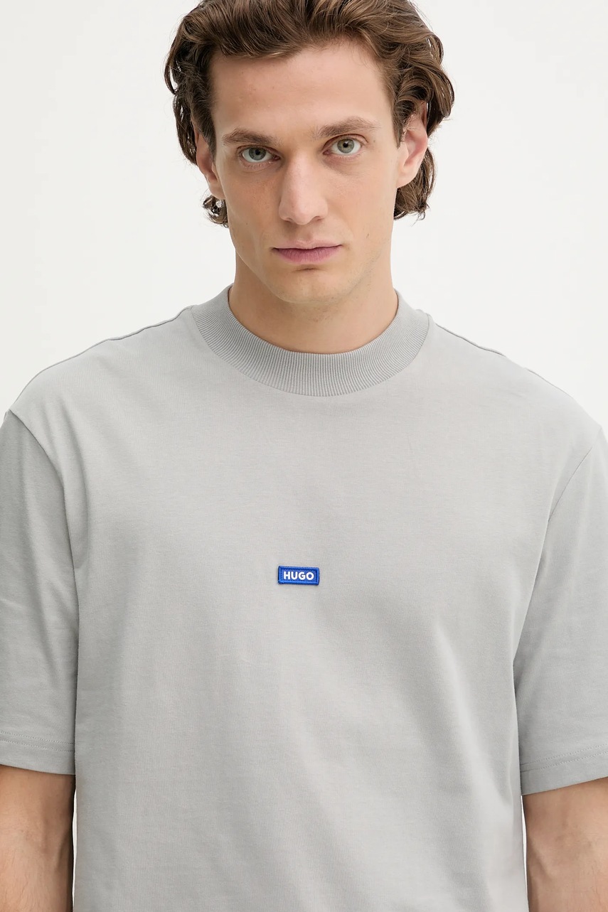 Hugo Blue t-shirt bawełniany męski kolor szary gładki 50509991