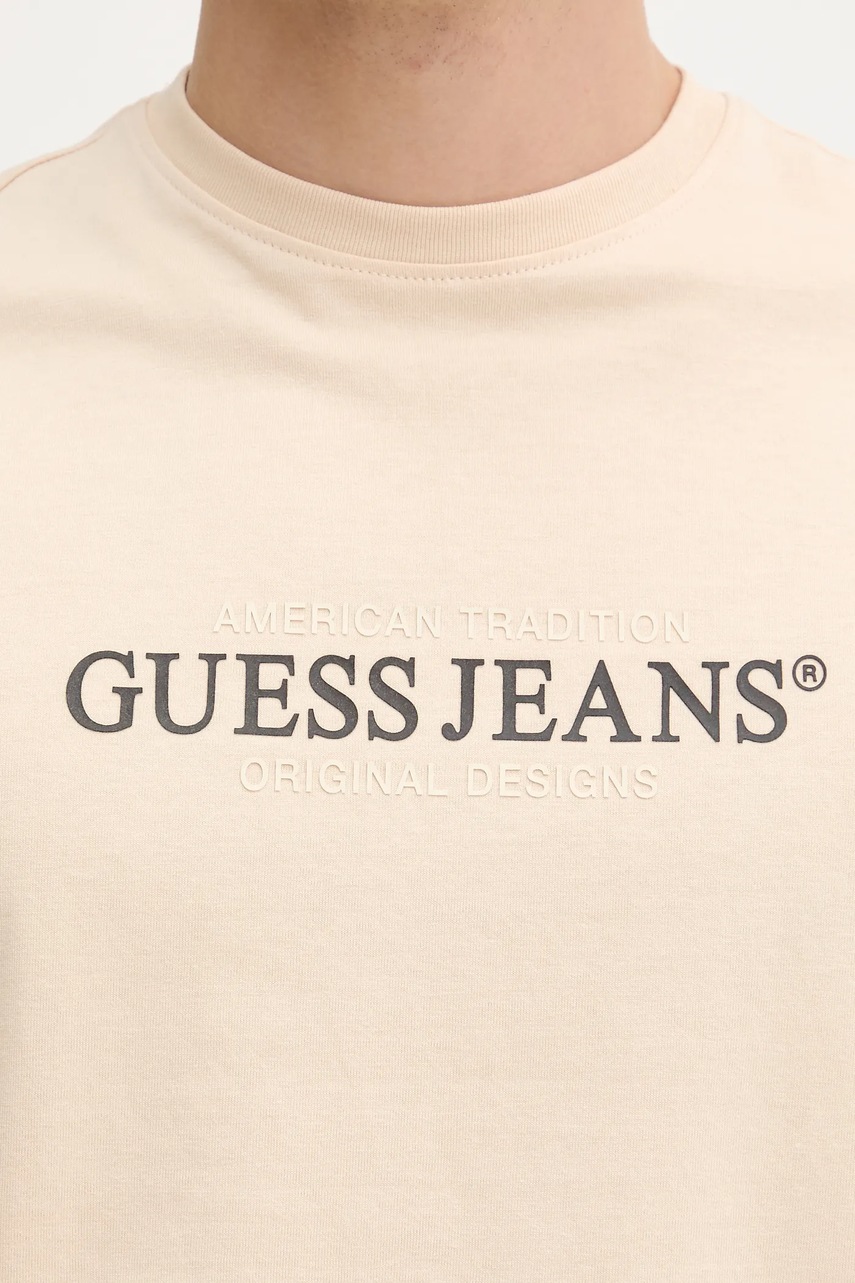 Guess Jeans t-shirt bawełniany męski kolor beżowy z nadrukiem M4YI42 K8FQ4