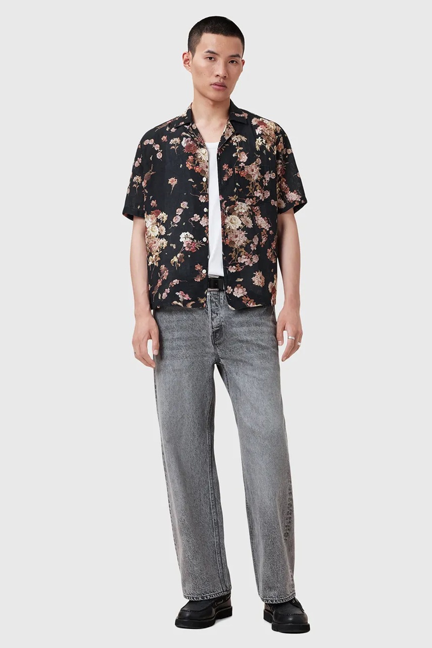 AllSaints koszula z dodatkiem lnu ARMADA męska kolor czarny regular M002SD