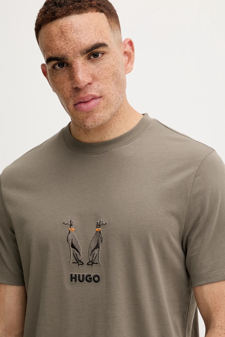 HUGO t-shirt bawełniany męski kolor zielony z aplikacją 50549154