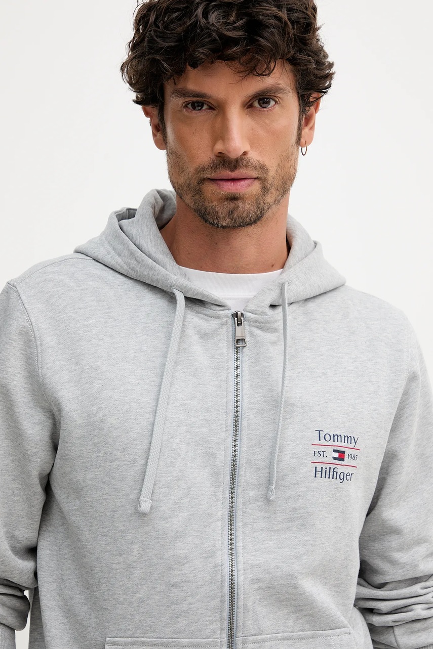 Tommy Hilfiger bluza bawełniana męska kolor szary z kapturem gładka MW0MW39250