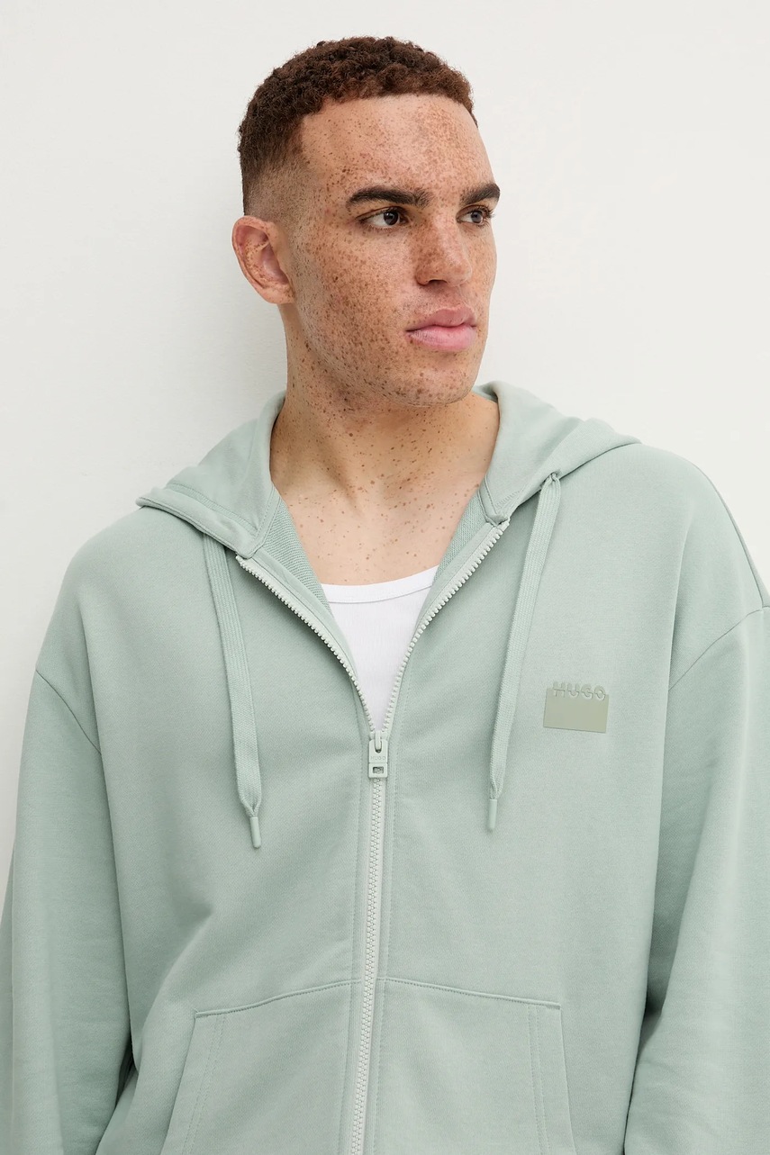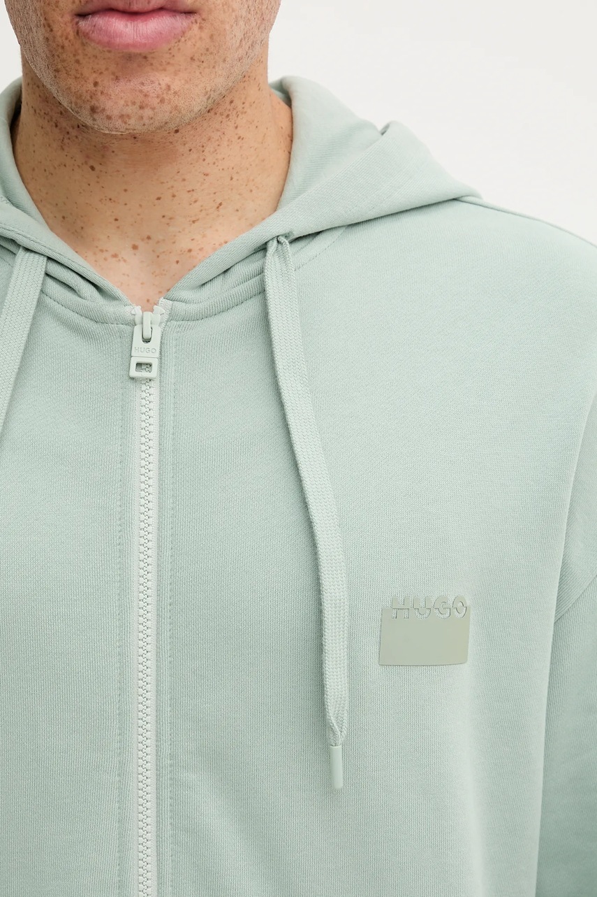 HUGO bluza bawełniana męska kolor zielony z kapturem z nadrukiem 50546874