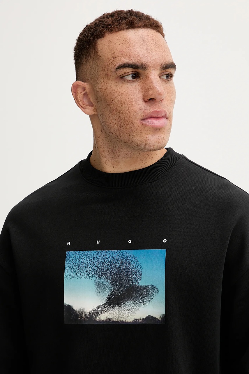 HUGO bluza bawełniana męska kolor czarny z nadrukiem 50549165