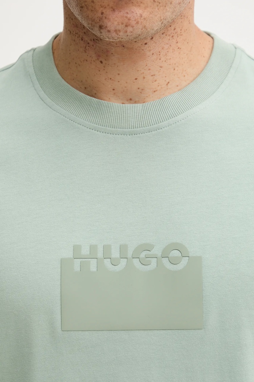HUGO t-shirt bawełniany męski kolor zielony z nadrukiem 50546867