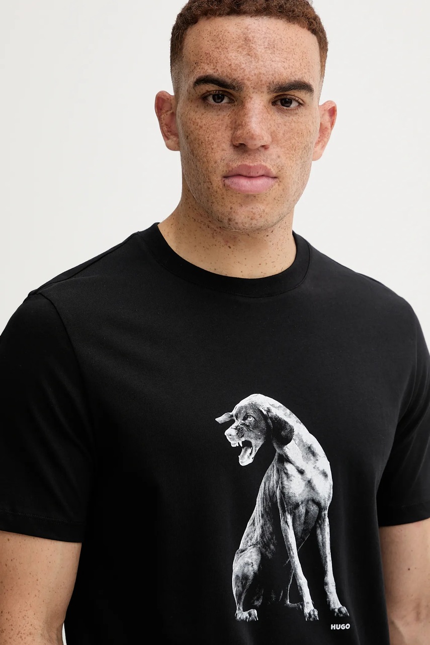 HUGO t-shirt bawełniany męski kolor czarny z nadrukiem 50548557