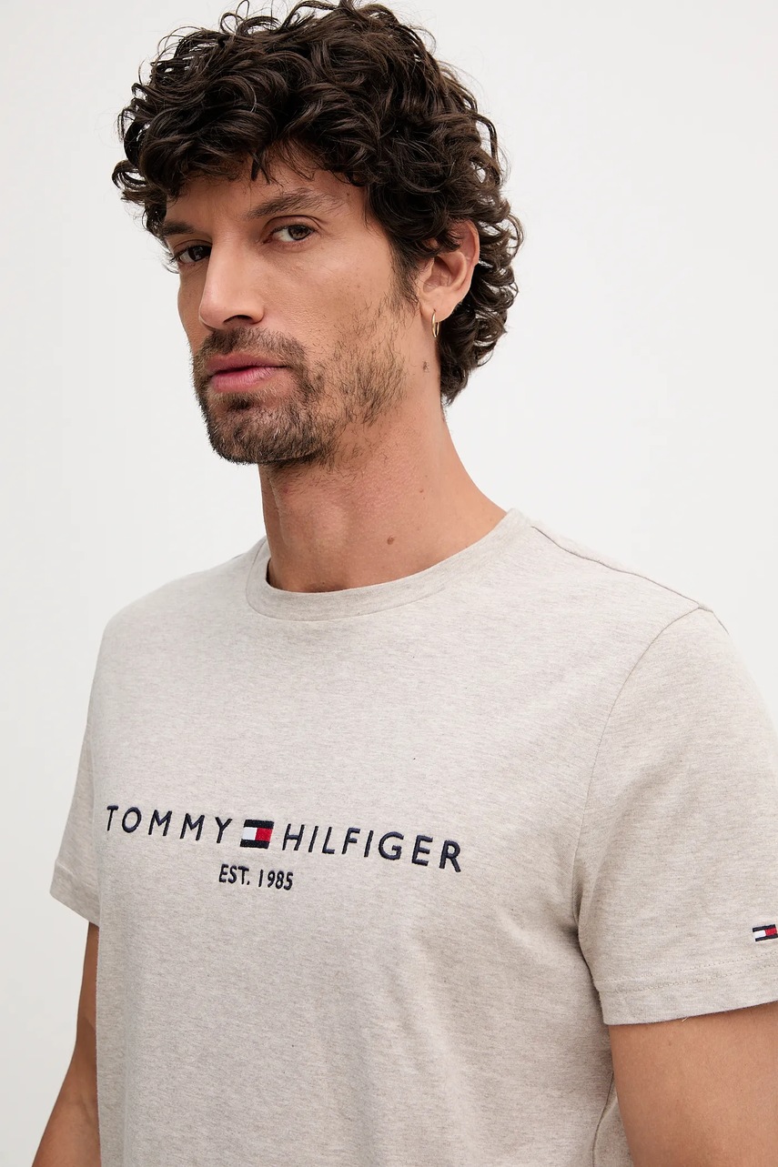 Tommy Hilfiger t-shirt bawełniany męski kolor beżowy z aplikacją MW0MW11797