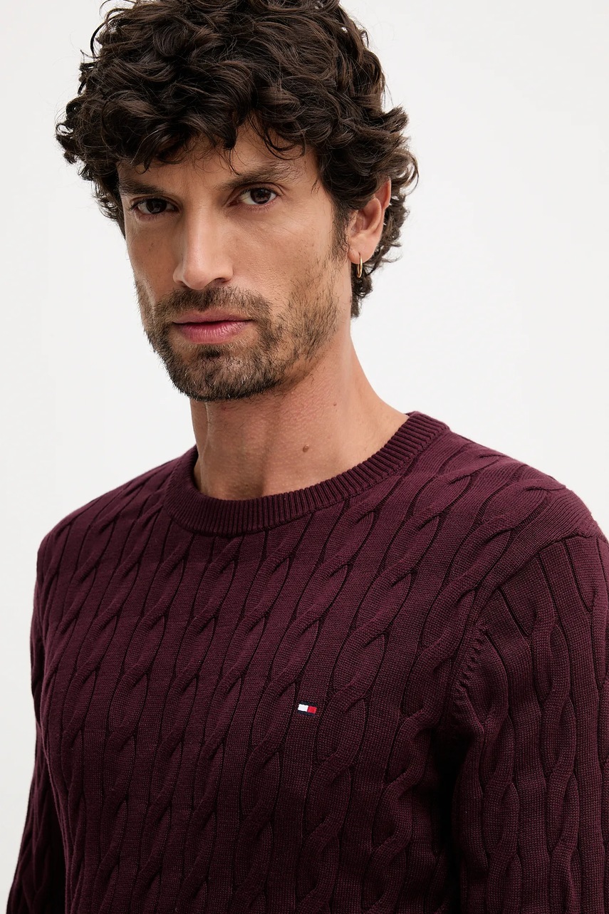 Tommy Hilfiger sweter bawełniany kolor bordowy lekki MW0MW33132