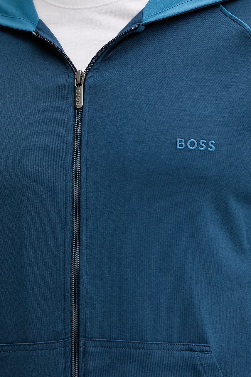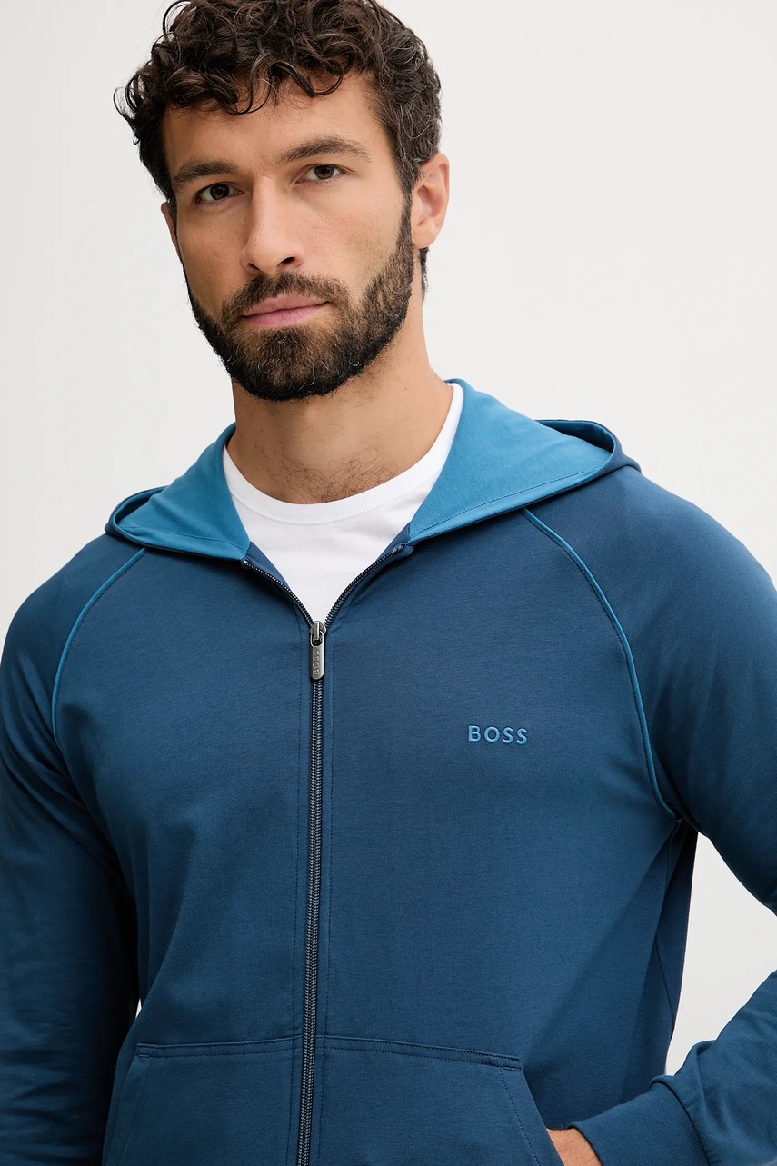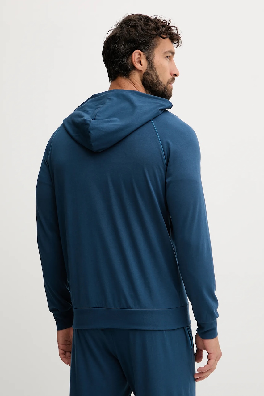 BOSS bluza lounge kolor niebieski z kapturem gładka