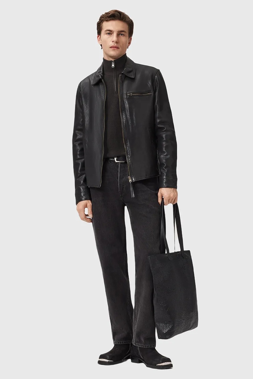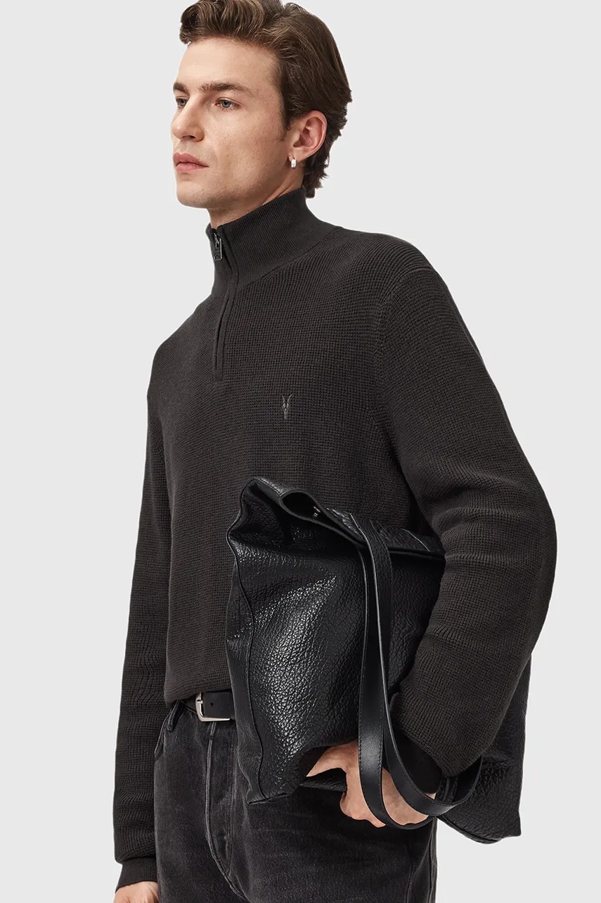 AllSaints sweter z dodatkiem wełny ASPEN męski kolor brązowy z półgolfem M090KB