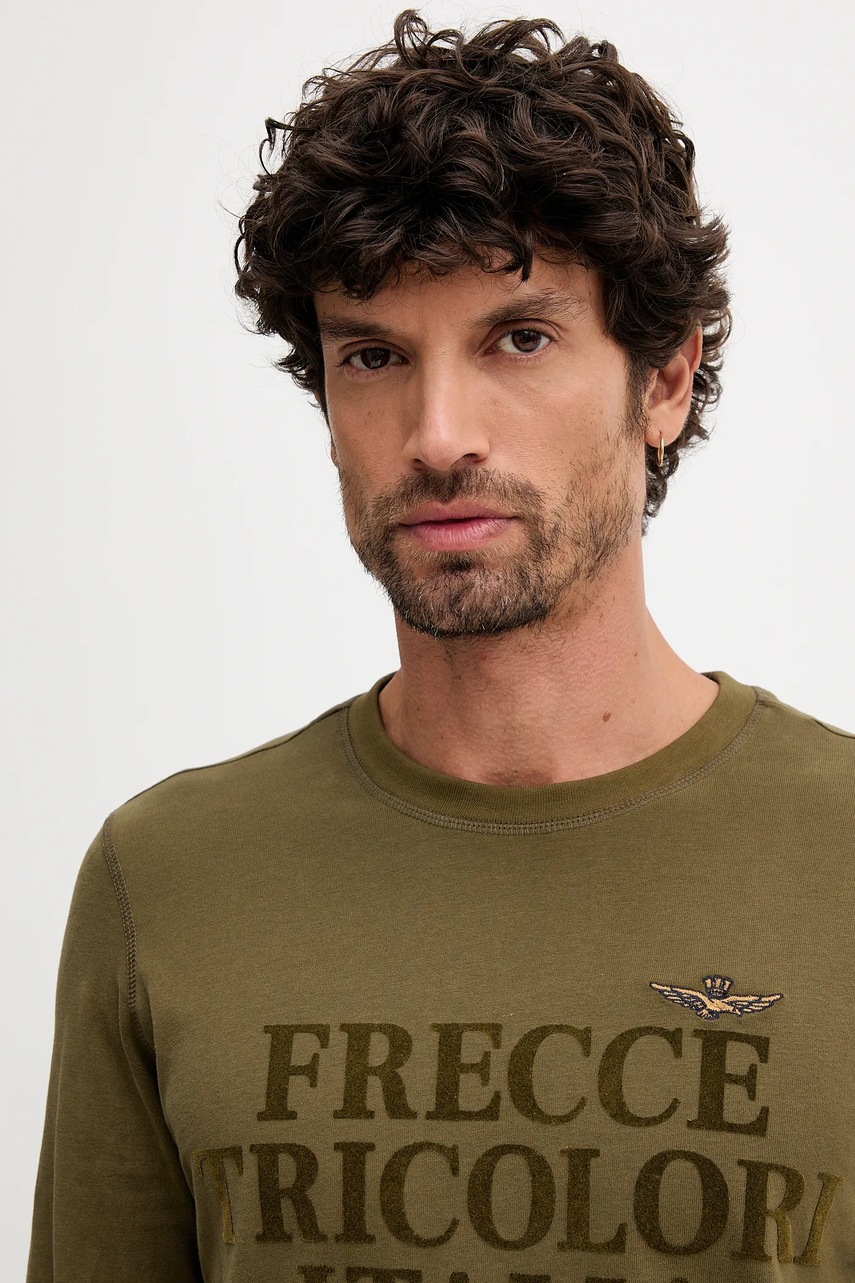 Aeronautica Militare longsleeve bawełniany kolor zielony z nadrukiem TS2469UJ00703