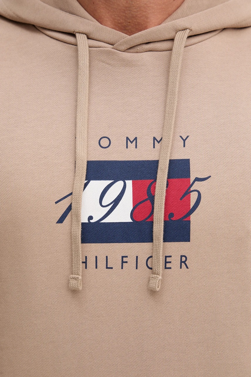 Tommy Hilfiger bluza bawełniana męska kolor beżowy z kapturem z nadrukiem MW0MW41332