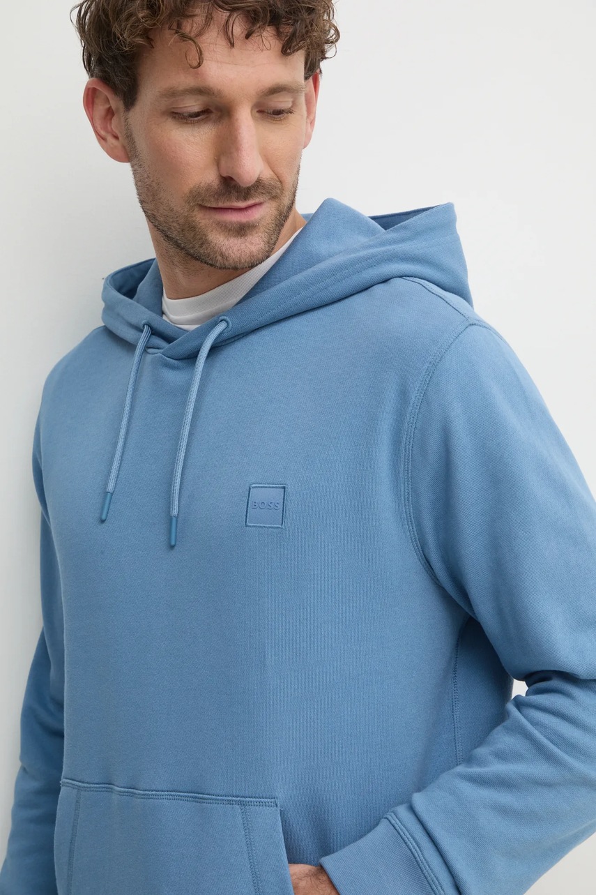 BOSS Orange bluza bawełniana męska kolor niebieski z kapturem gładka 50509314