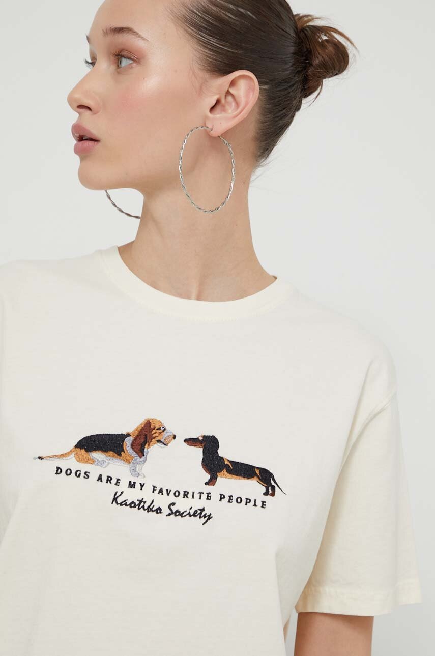 Kaotiko t-shirt bawełniany kolor beżowy z aplikacją