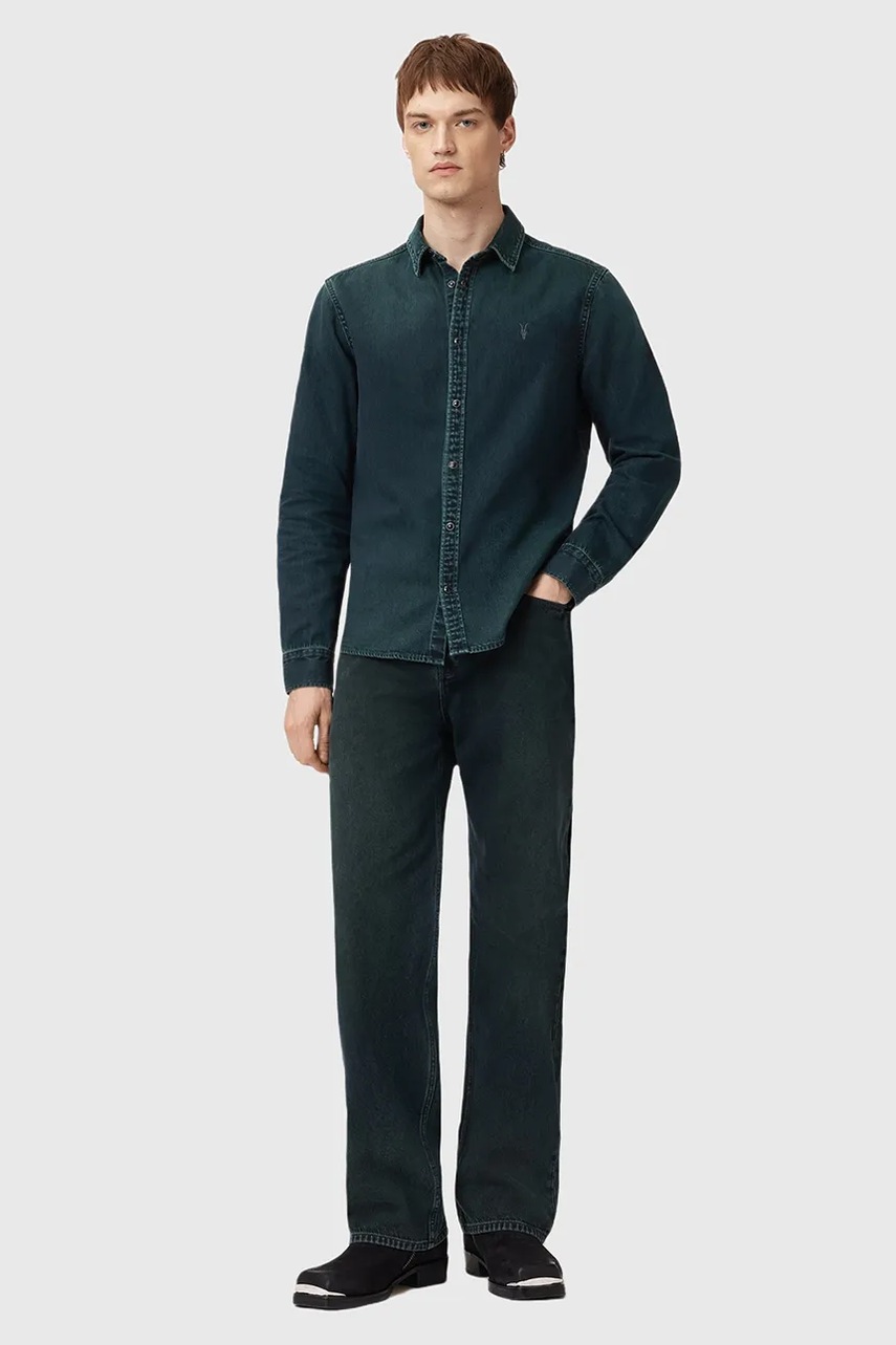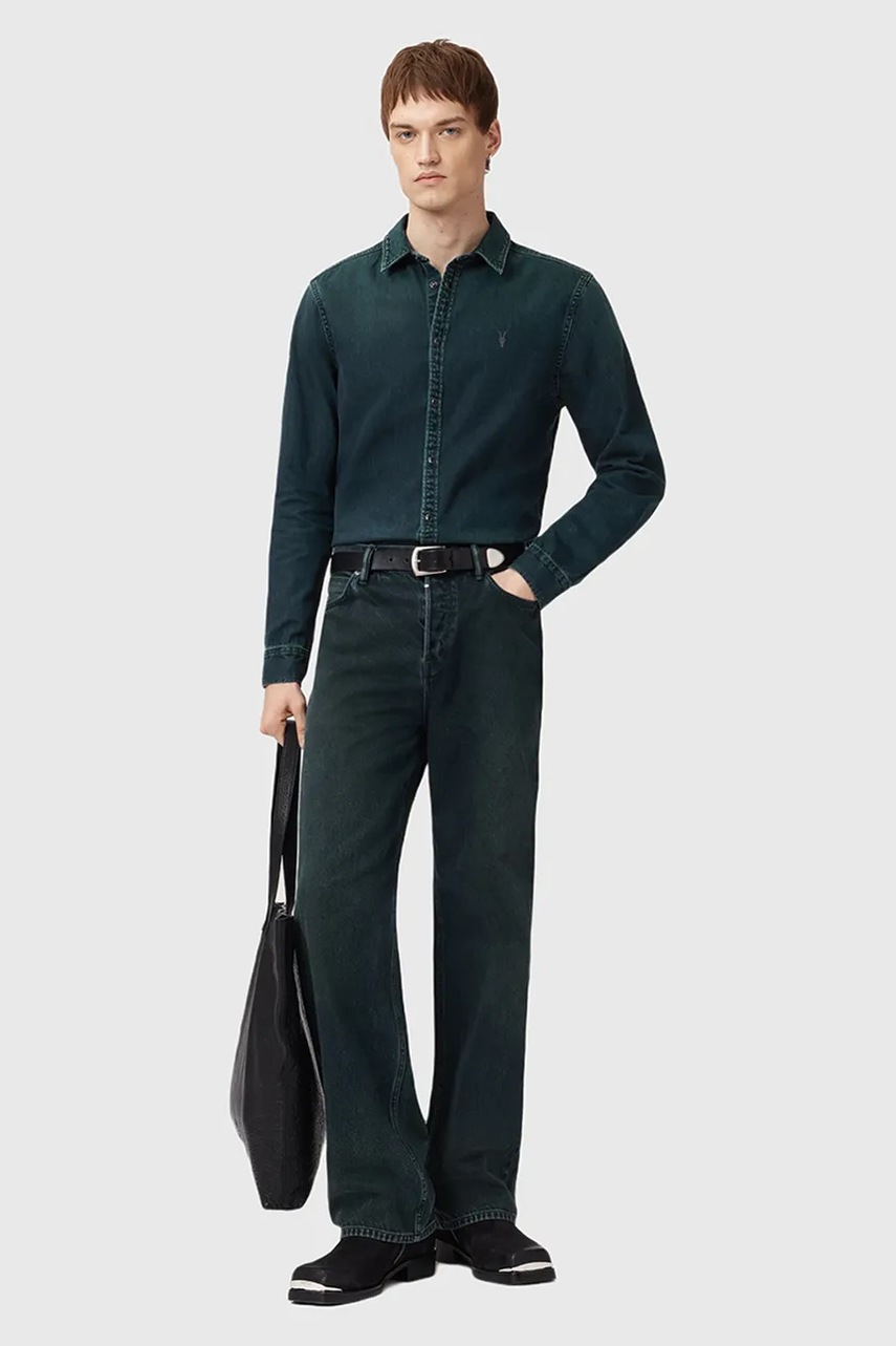 AllSaints koszula jeansowa GLEASON LS SHIRT męska kolor granatowy regular z kołnierzykiem klasycznym M165SB