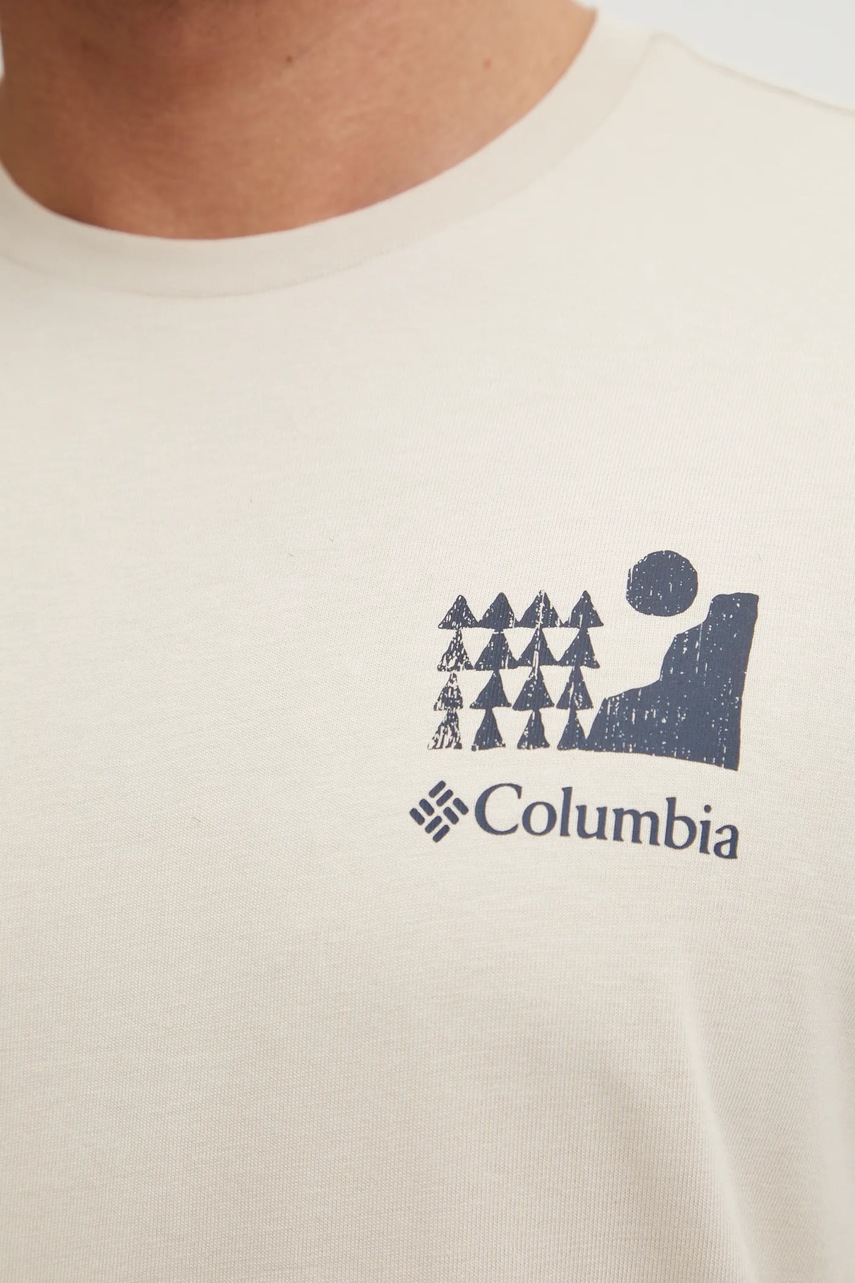Columbia t-shirt bawełniany Explorers Canyon męski kolor beżowy z nadrukiem 2036451.