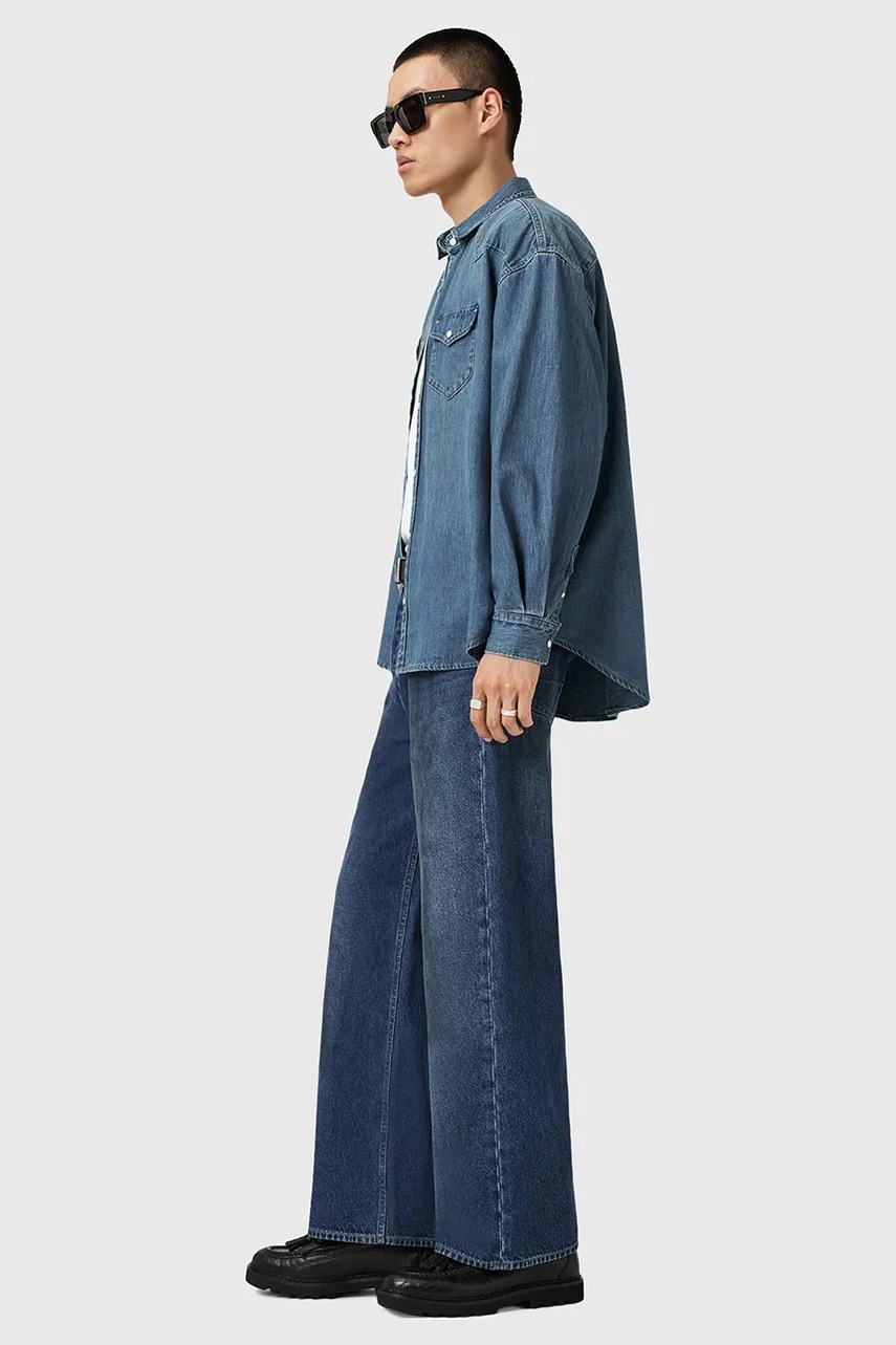 AllSaints koszula jeansowa FENTON męska kolor niebieski relaxed z kołnierzykiem klasycznym M054SD