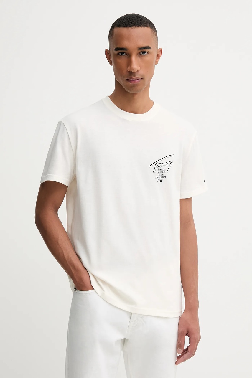 Tommy Jeans t-shirt bawełniany męski kolor beżowy z nadrukiem DM0DM22120