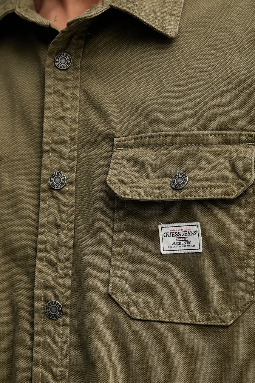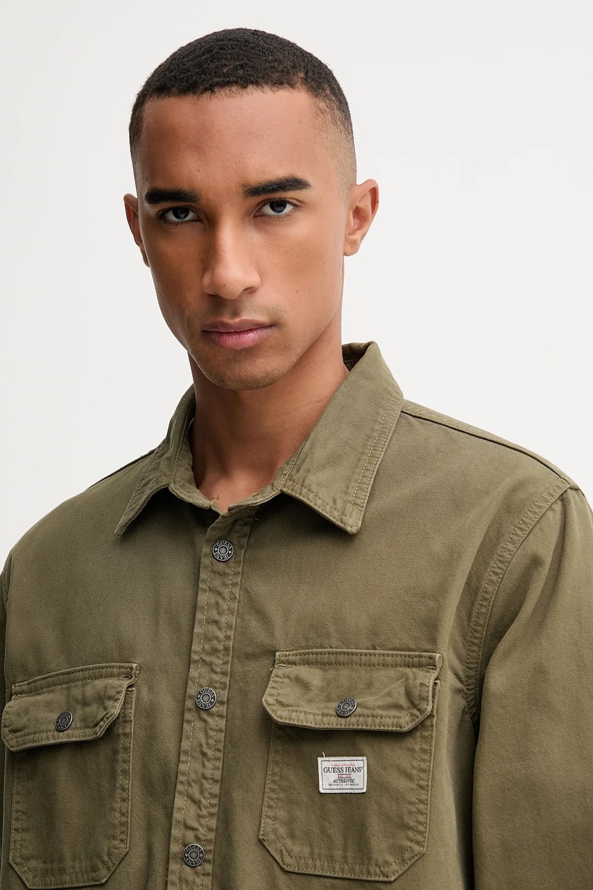 Guess Jeans koszula jeansowa męska kolor zielony regular z kołnierzykiem klasycznym M5YH66 WHFR1
