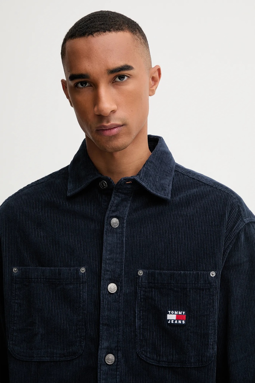 Tommy Jeans koszula sztruksowa męska kolor granatowy relaxed z kołnierzykiem klasycznym DM0DM22016