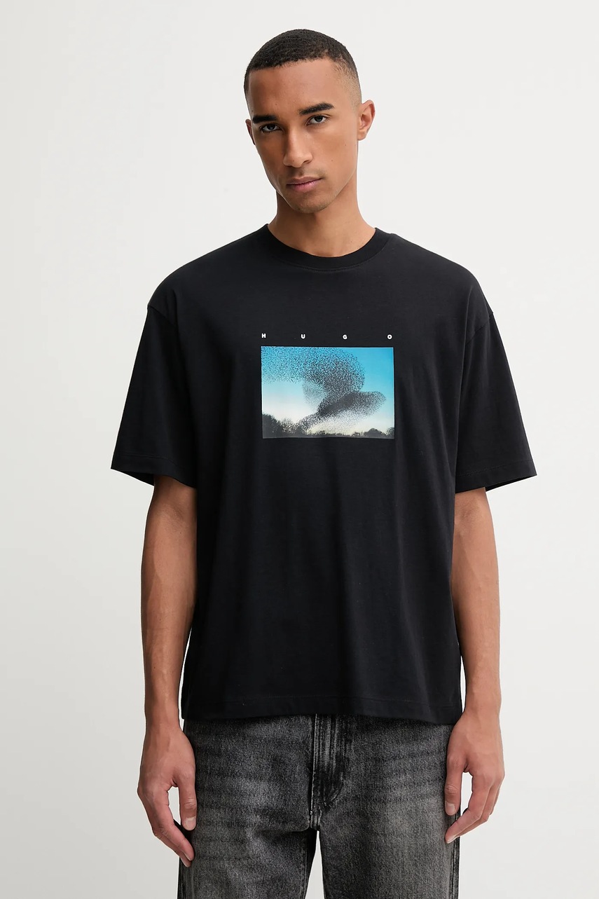 HUGO t-shirt bawełniany męski kolor czarny z nadrukiem 50549156