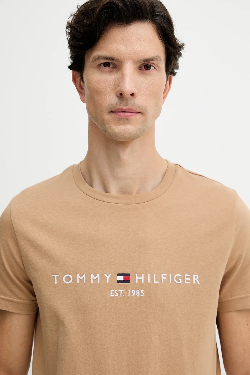 Tommy Hilfiger t-shirt bawełniany męski kolor zielony z aplikacją MW0MW11797