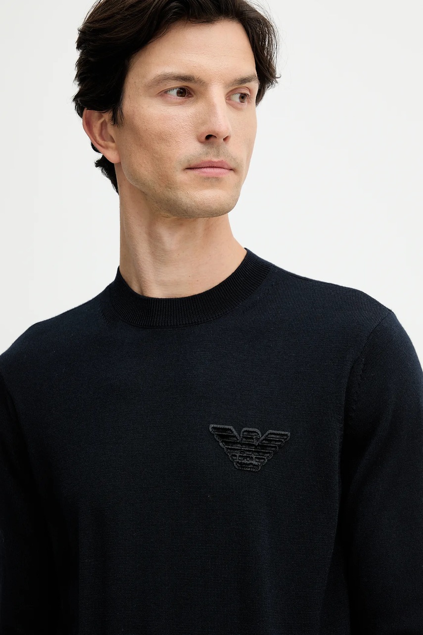 Emporio Armani sweter wełniany męski kolor granatowy lekki EM002419 AF14158