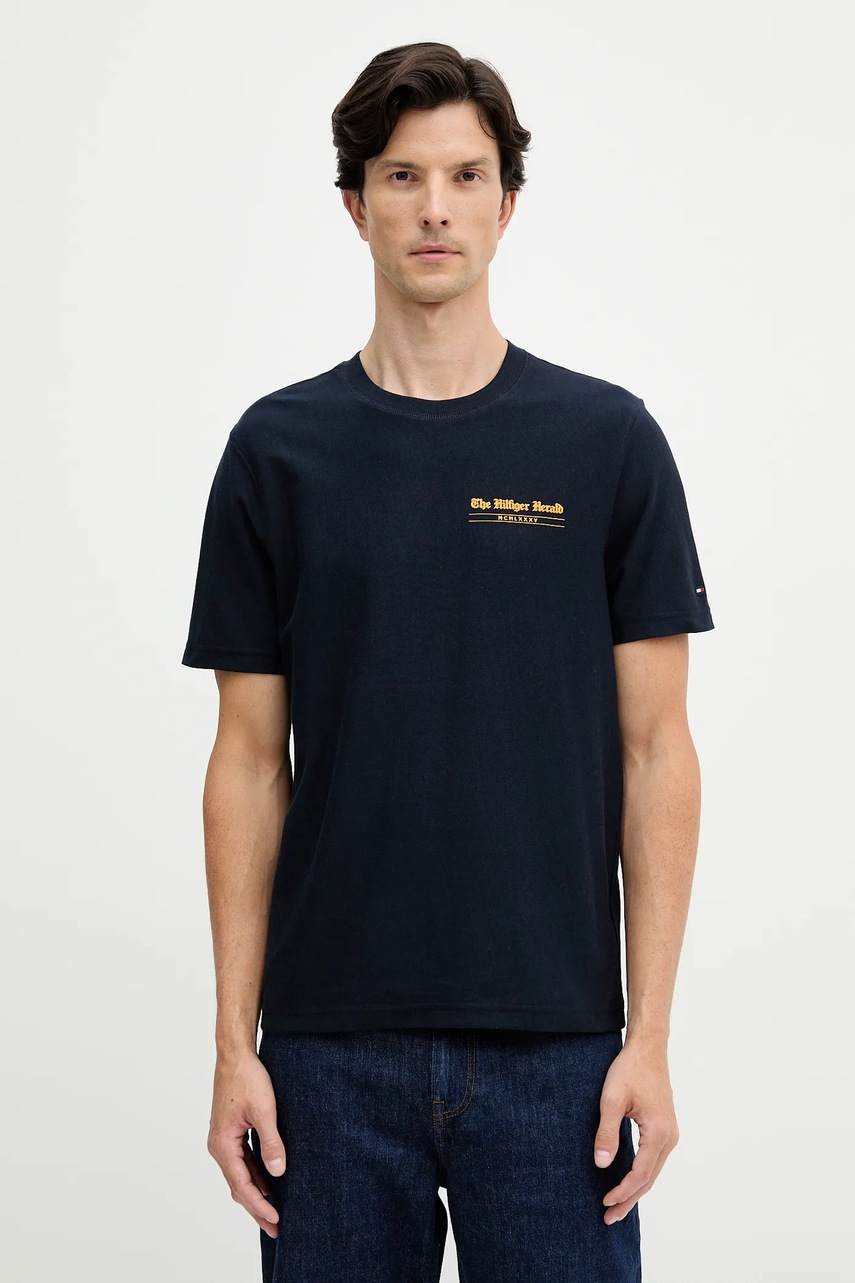 Tommy Hilfiger t-shirt bawełniany męski kolor granatowy z nadrukiem MW0MW40008