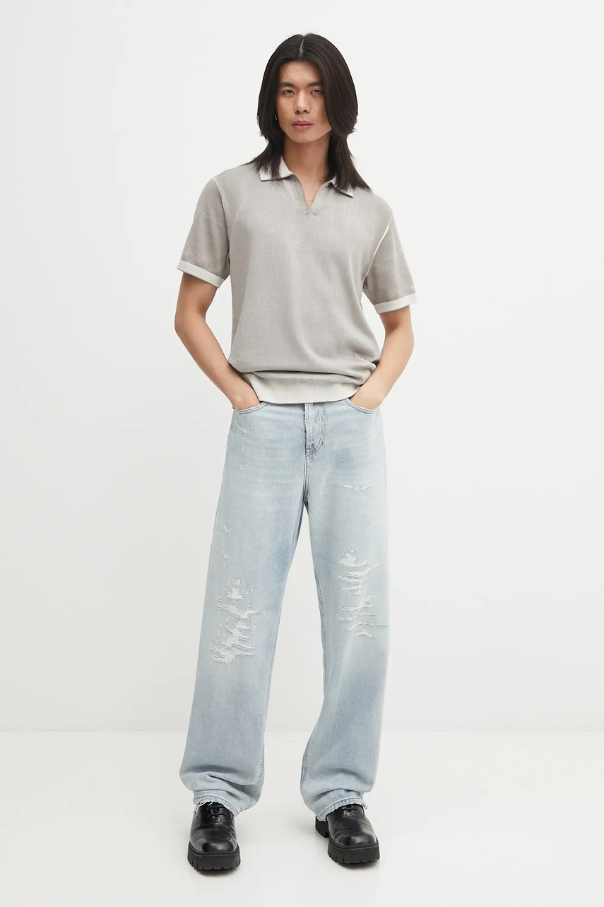 Diesel polo bawełniane K-LORENZO-SS męski kolor szary gładki A18127.0BEAR