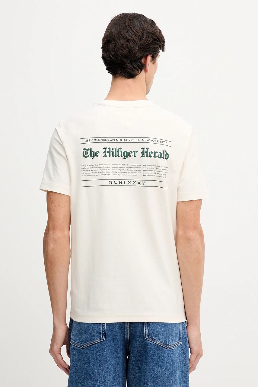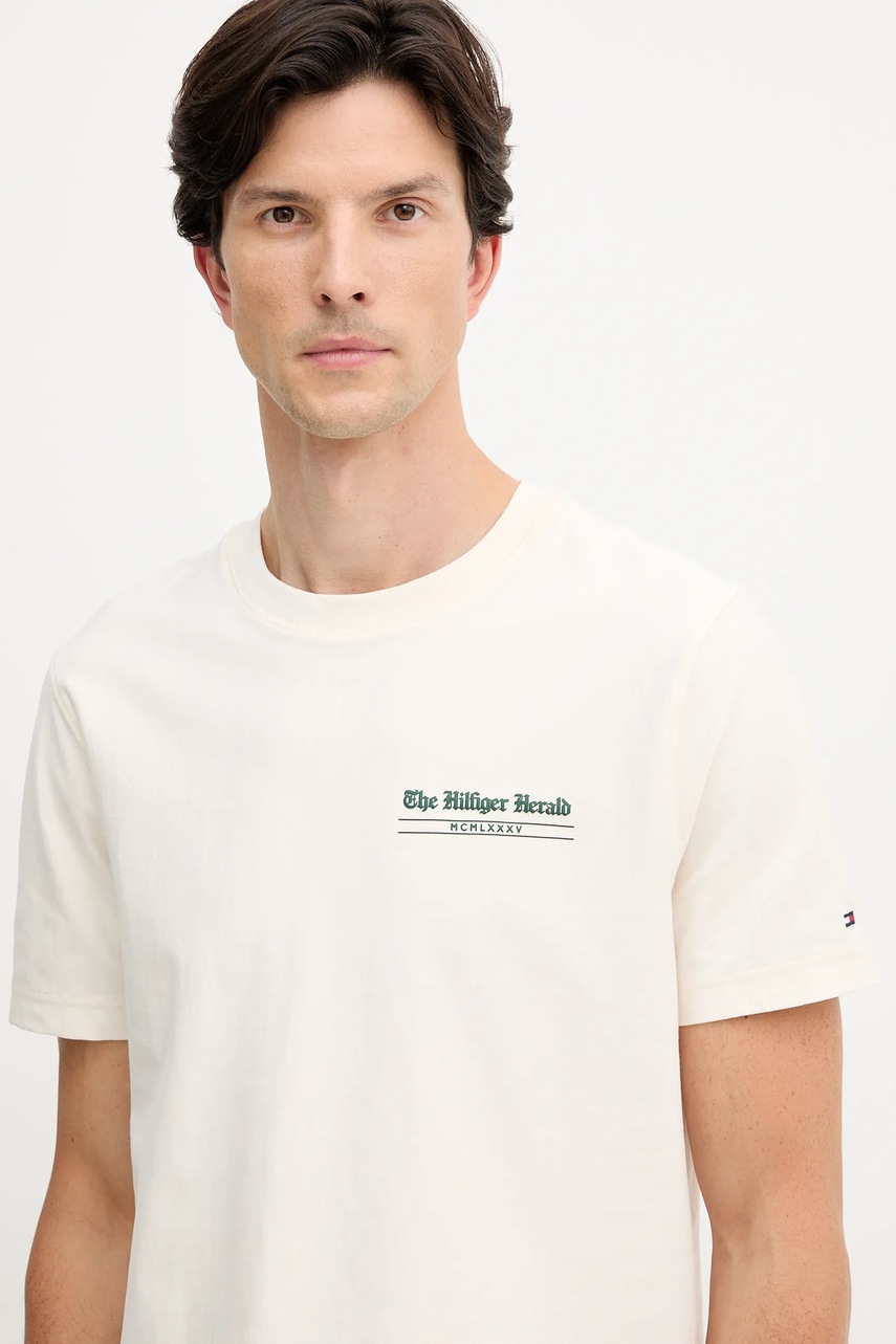 Tommy Hilfiger t-shirt bawełniany męski kolor beżowy z nadrukiem MW0MW40008