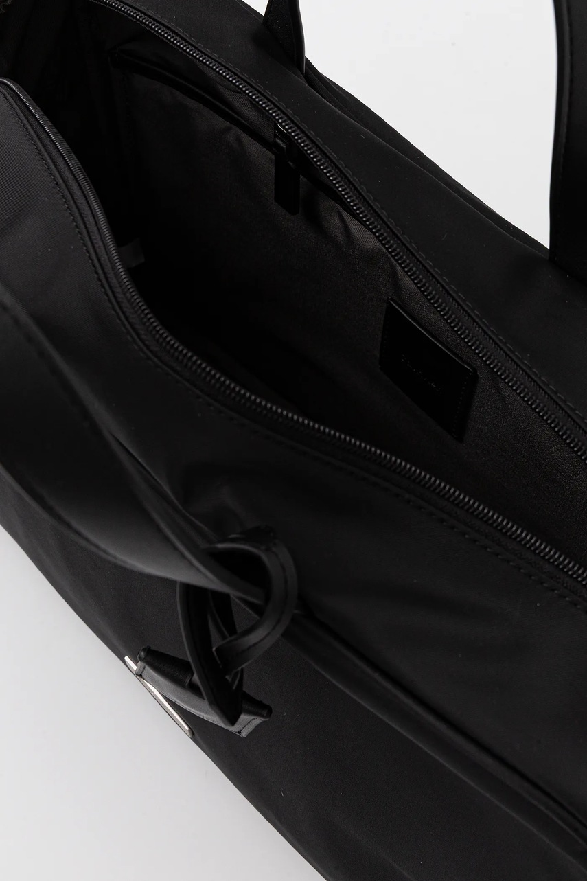 - Z tyłu zapinana na suwak kieszeń, w której znajdują się odpinane paski umożliwiające przekształcenie torby w plecak.