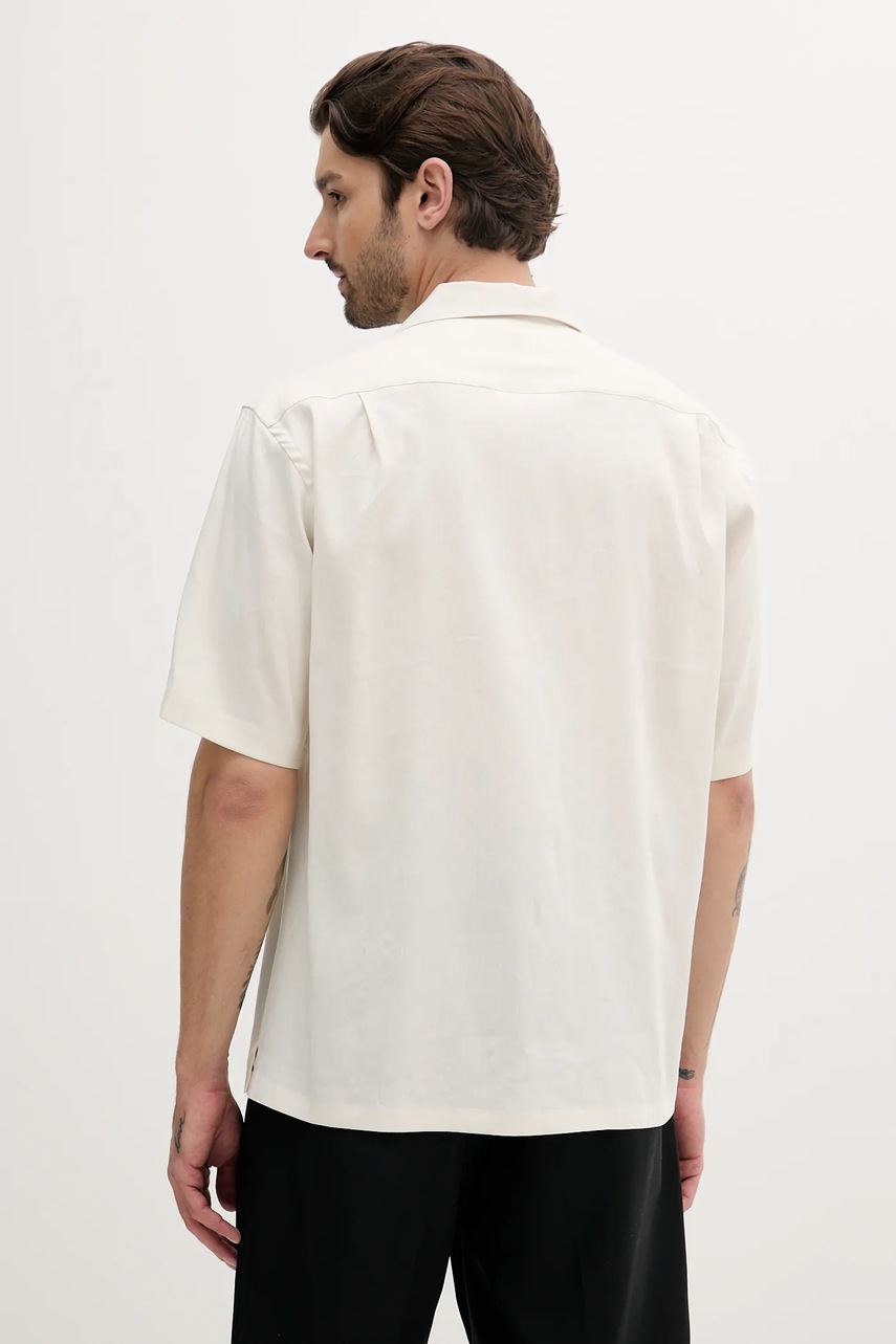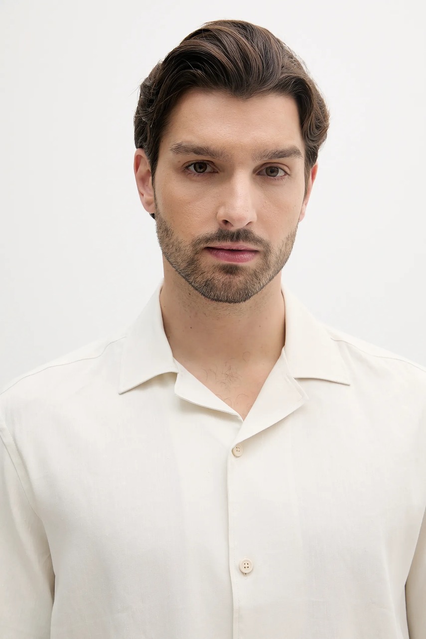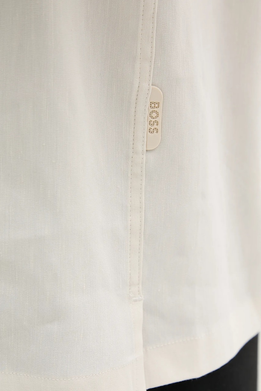 BOSS koszula lniana męska kolor beżowy relaxed 50539918