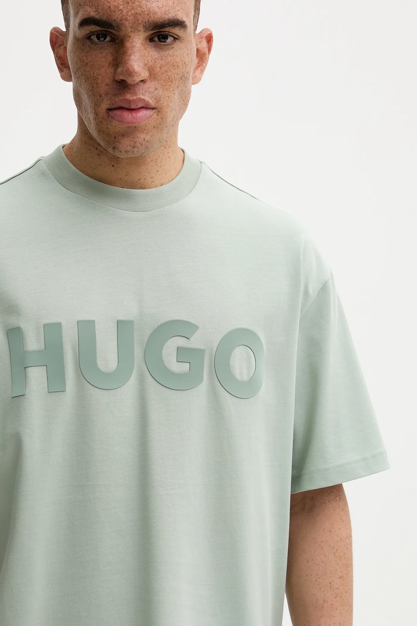 HUGO t-shirt bawełniany męski kolor zielony z nadrukiem 50525765
