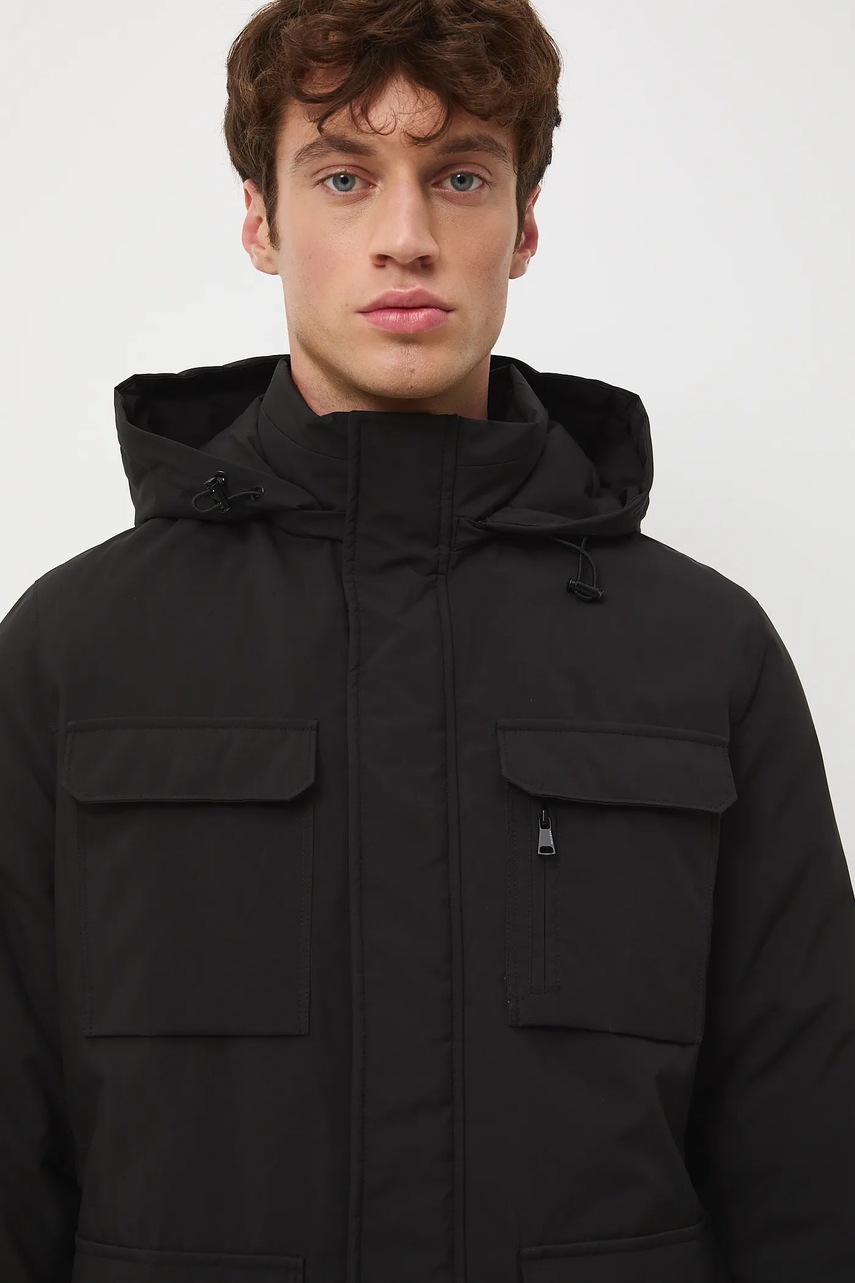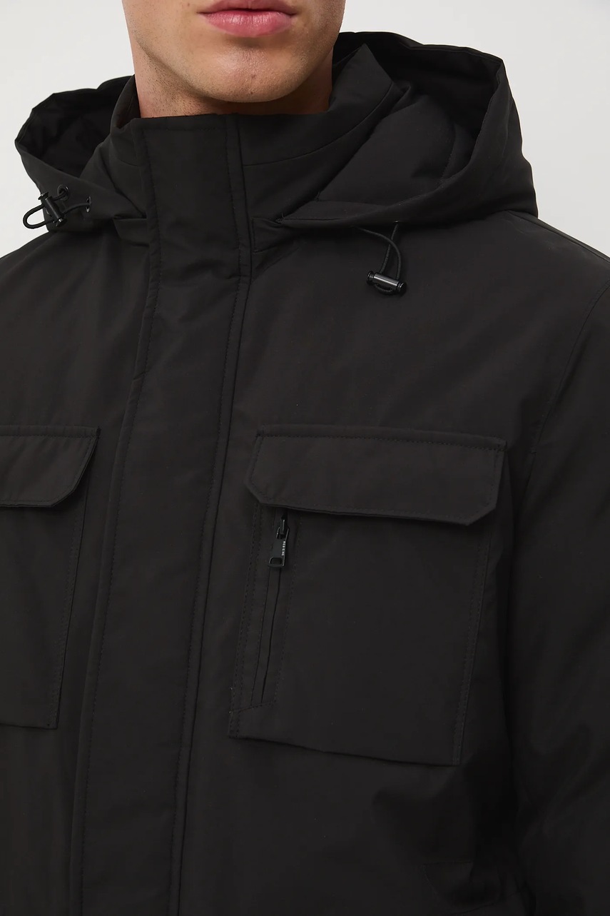 - Kaptur z regulacją za pomocą troczków ze stoperami.