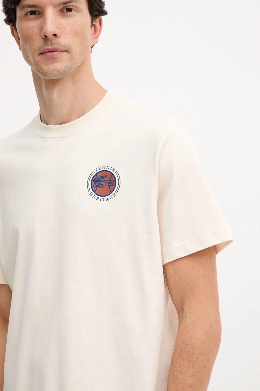 Lacoste t-shirt bawełniany męski kolor beżowy z nadrukiem TH5903