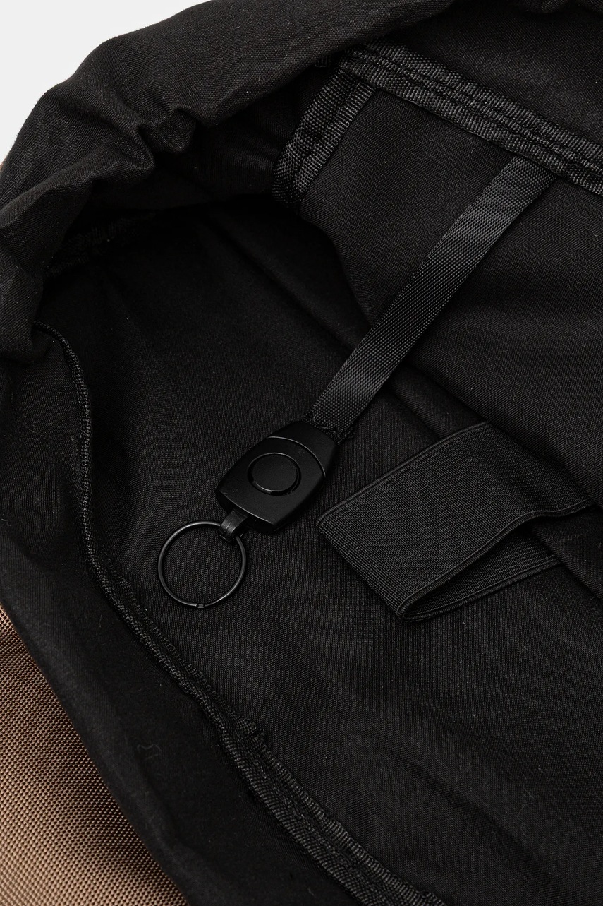 - Boczne kieszenie z siateczki wykończone elastyczną gumką.