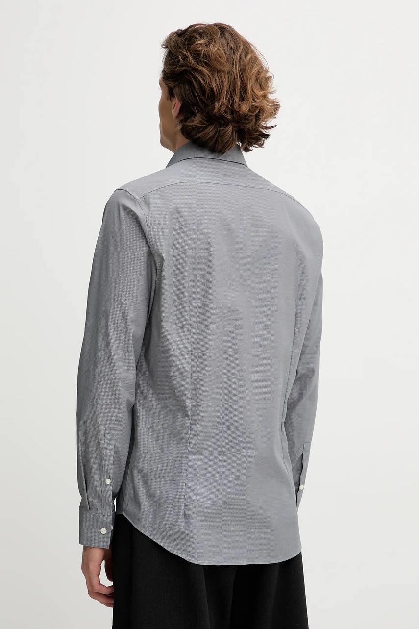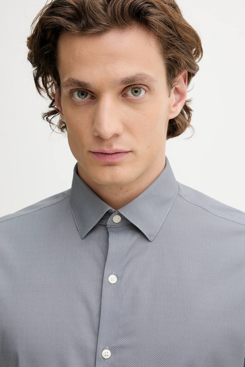 Calvin Klein koszula męska kolor szary slim z kołnierzykiem włoskim LV019EU074