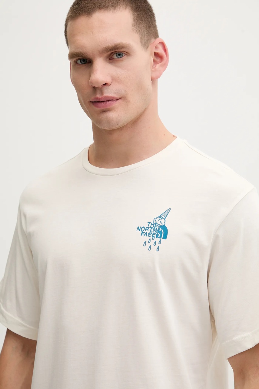 The North Face t-shirt bawełniany Powder Days męski kolor beżowy z nadrukiem NF0A8E4DQLI1