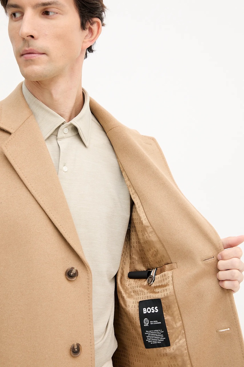 BOSS płaszcz wełniany kolor beżowy 50549187