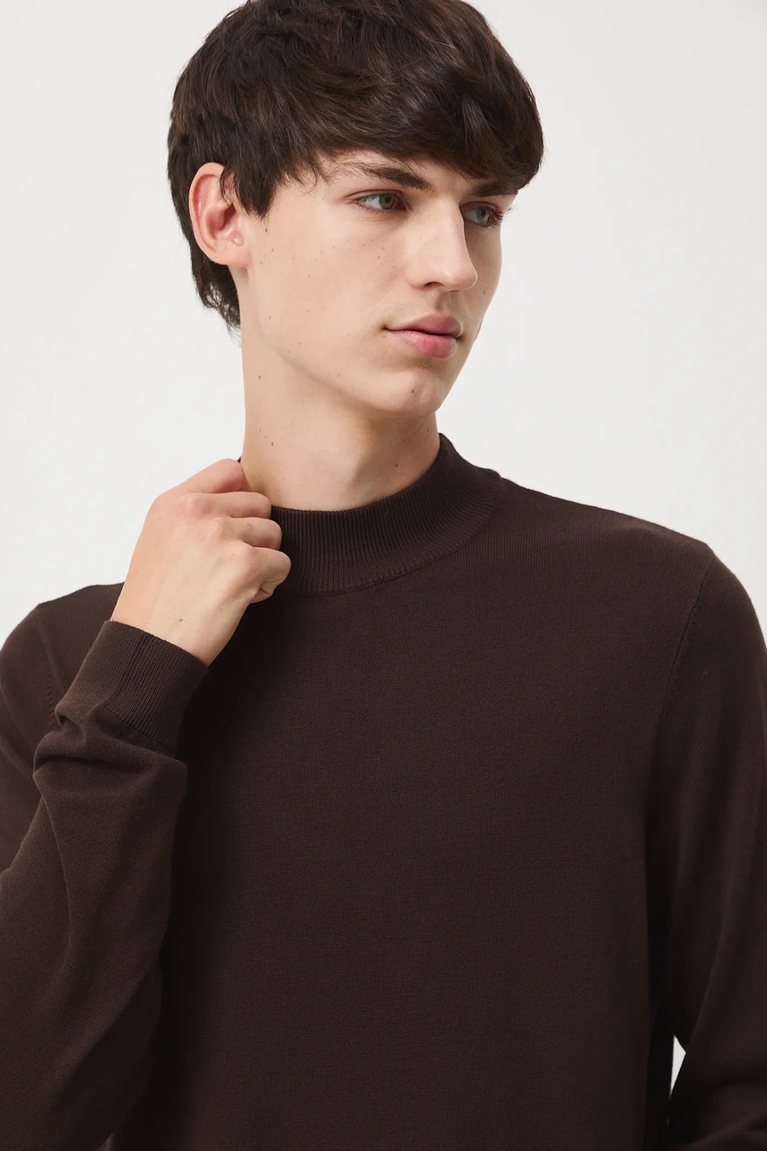 Medicine sweter męski kolor brązowy z półgolfem