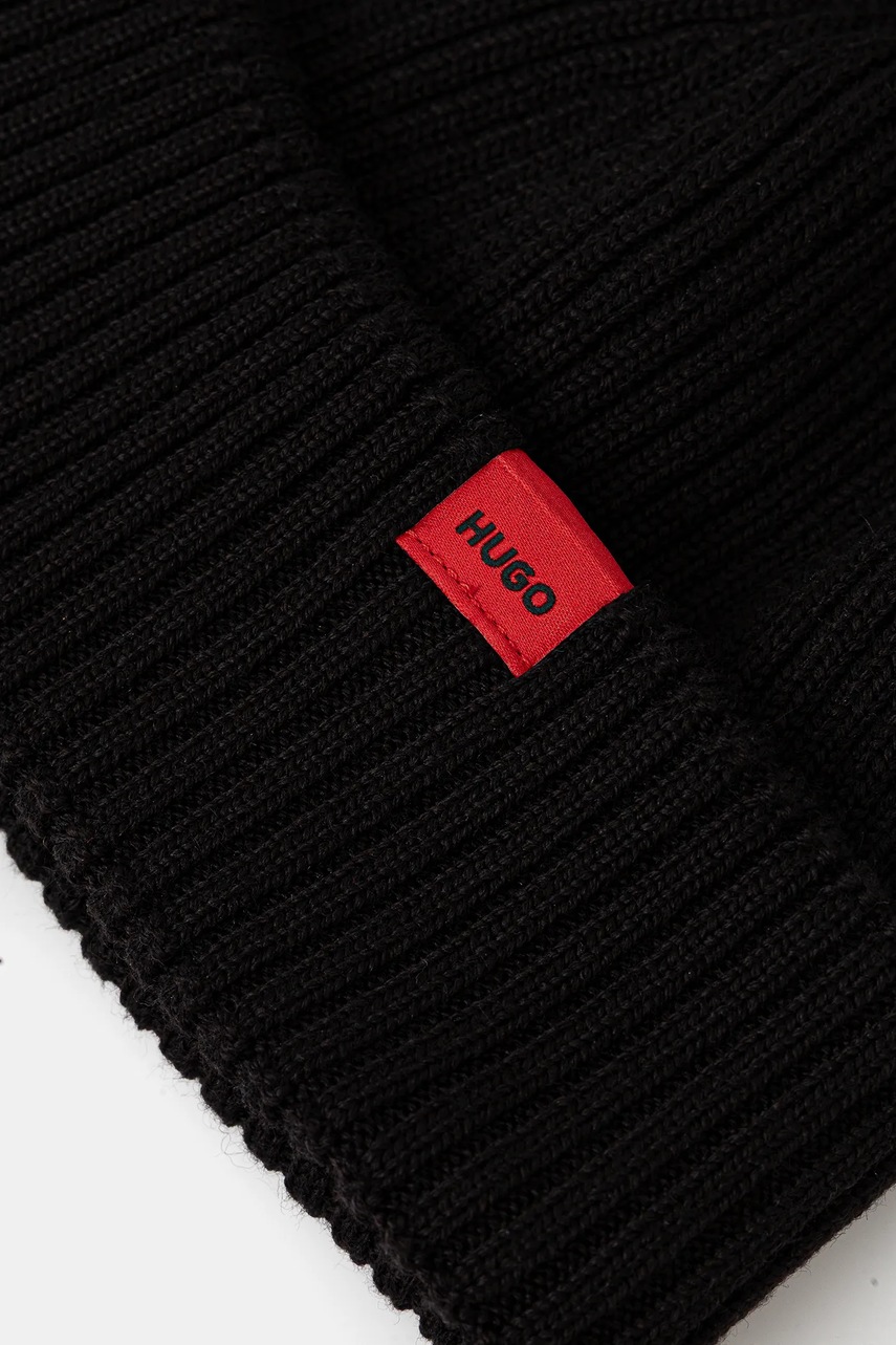 HUGO czapka z dodatkiem wełny kolor czarny 50551267