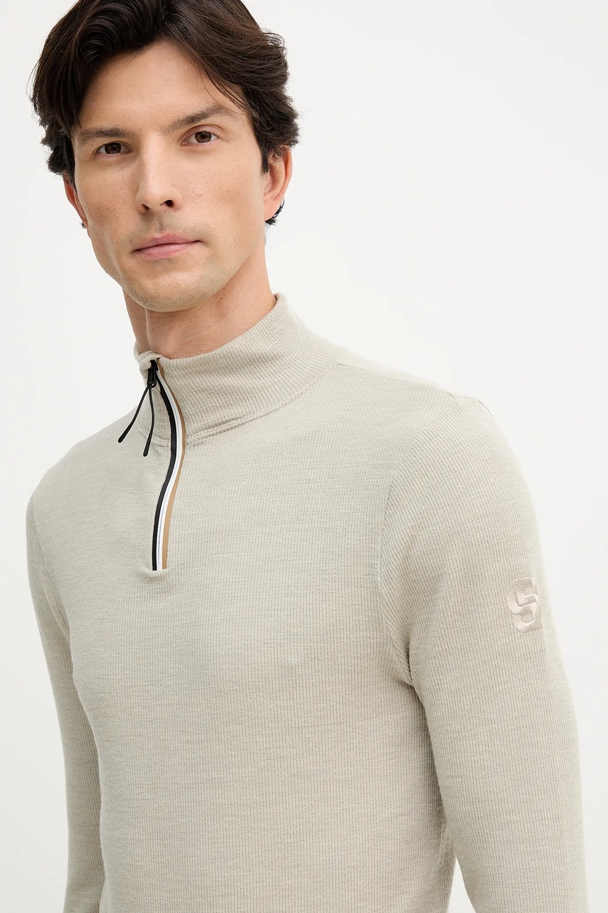 BOSS bluza z dodatkiem wełny męska kolor beżowy gładka 50544368