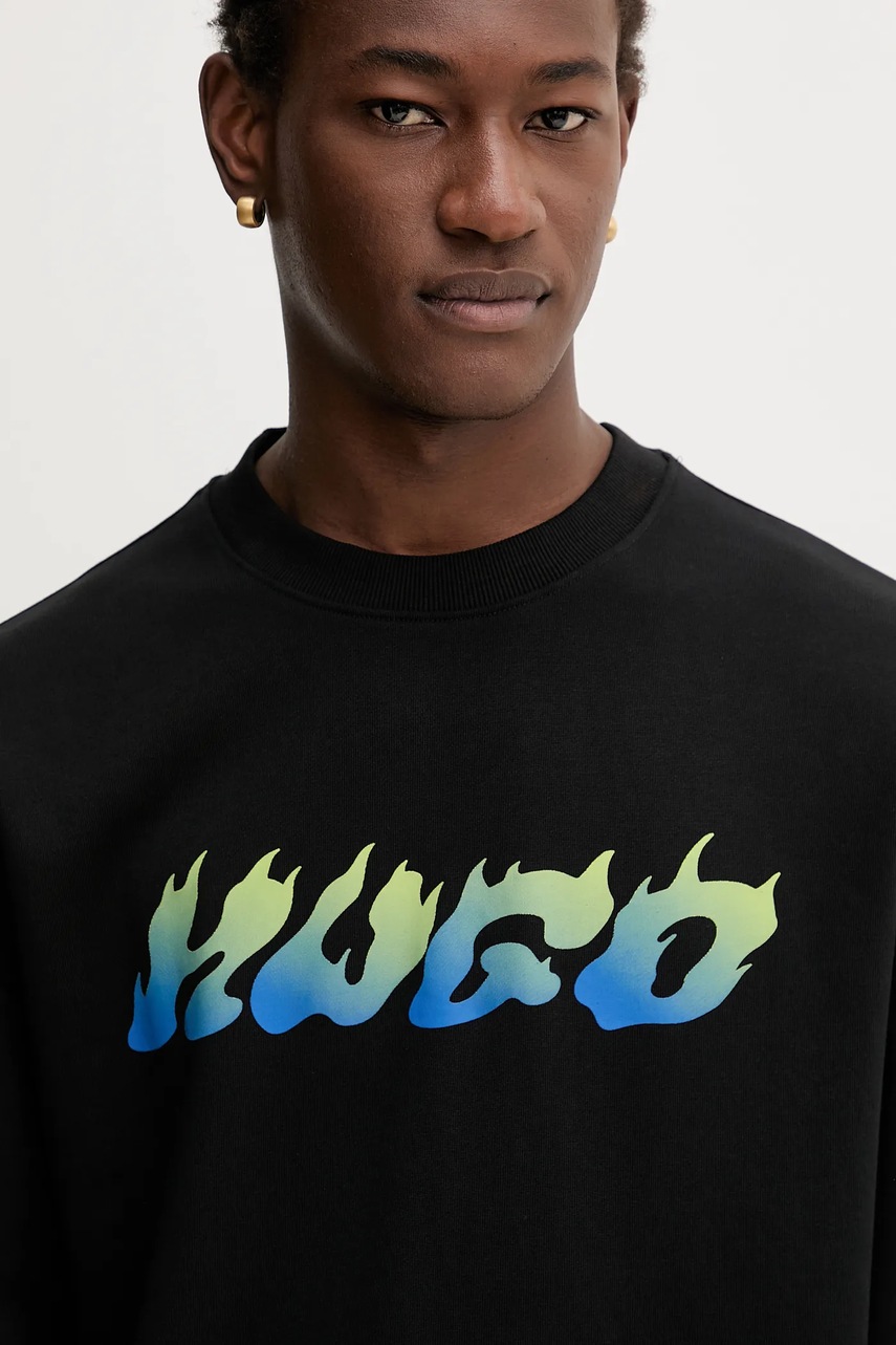 Hugo Blue bluza bawełniana męska kolor czarny z nadrukiem 50549153