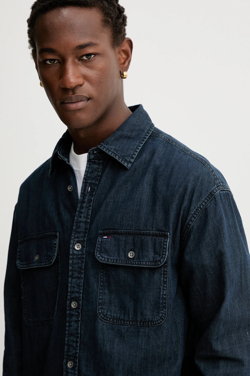 Tommy Jeans koszula jeansowa męska kolor granatowy relaxed z kołnierzykiem klasycznym DM0DM22122