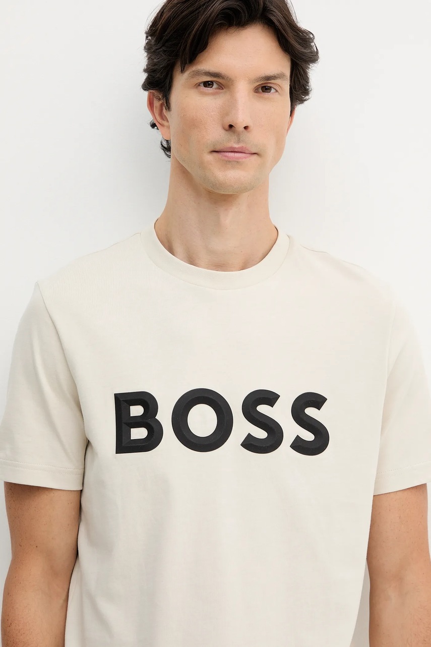 BOSS Green t-shirt bawełniany męski kolor beżowy z nadrukiem 50548411